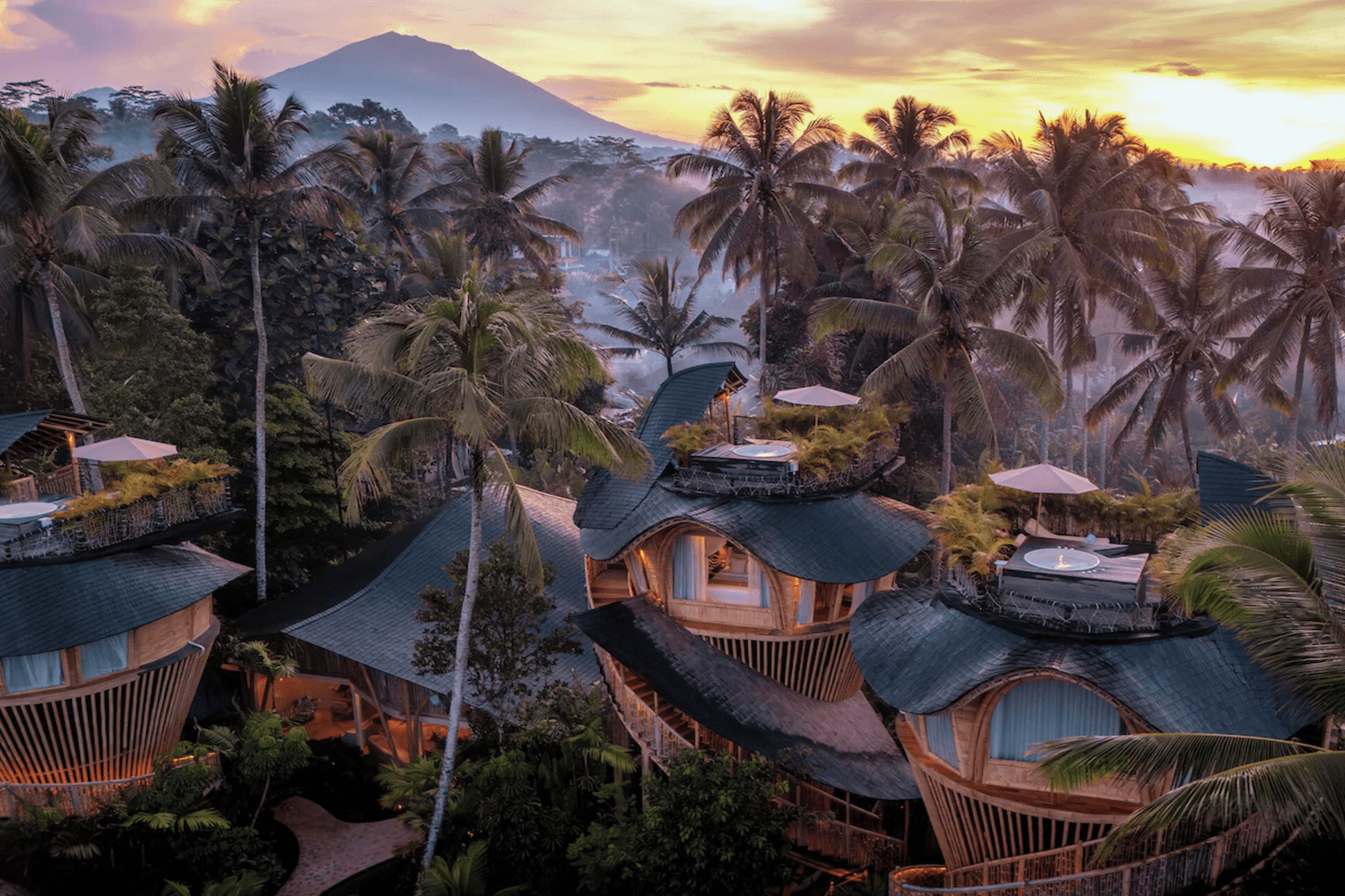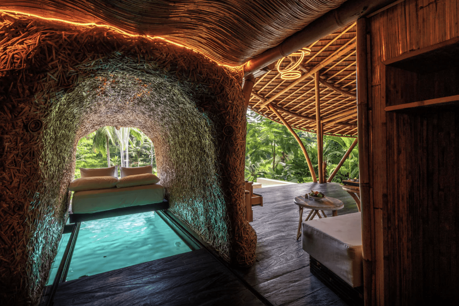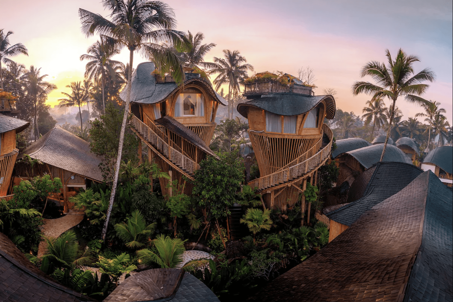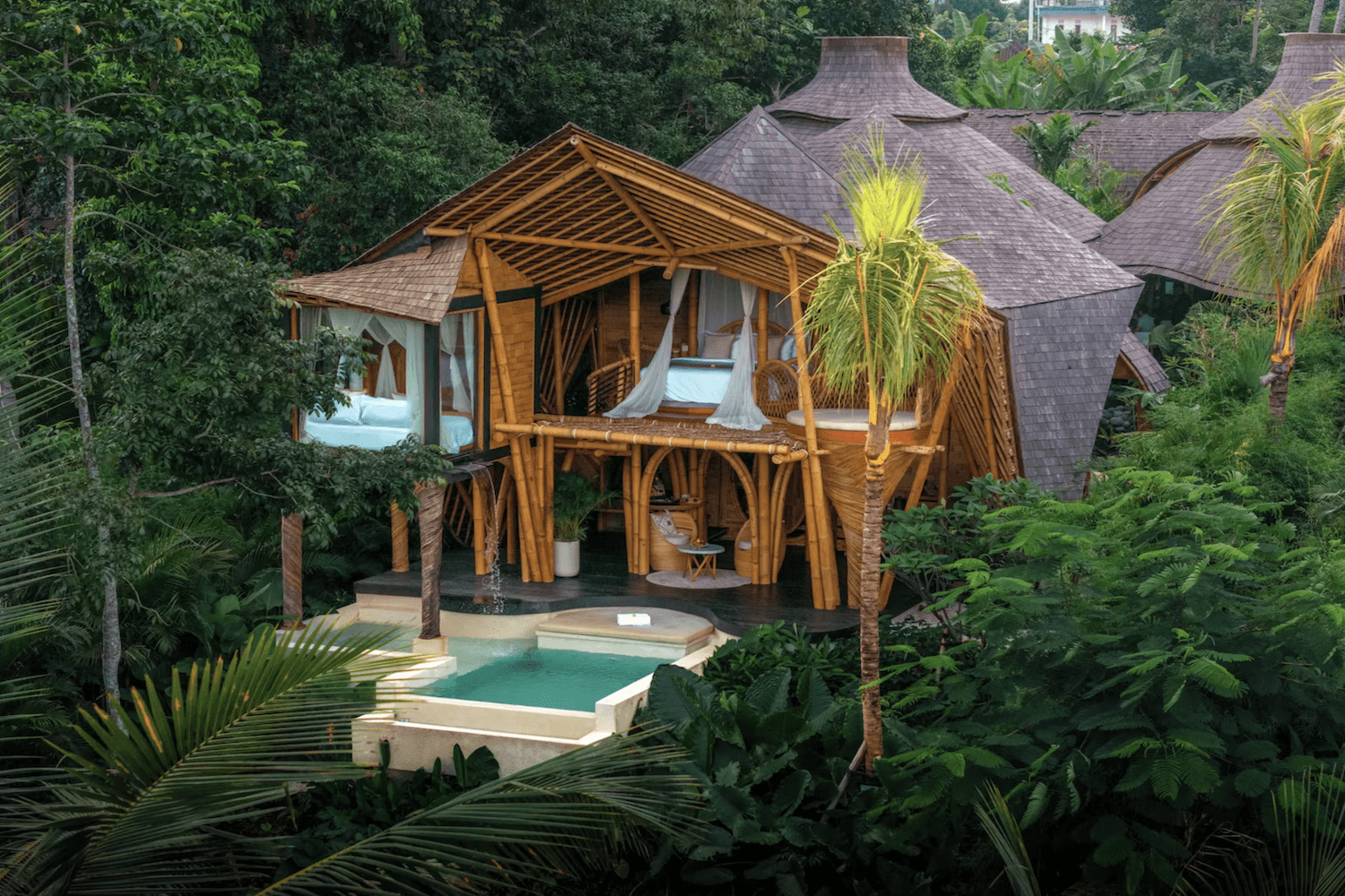 Hotellet er bygget med fokus på bambus, åbne konstruktioner og naturlige materialer, hvilket giver en helt unik stemning, der føles både eksklusiv og tæt på naturen på samme tid.