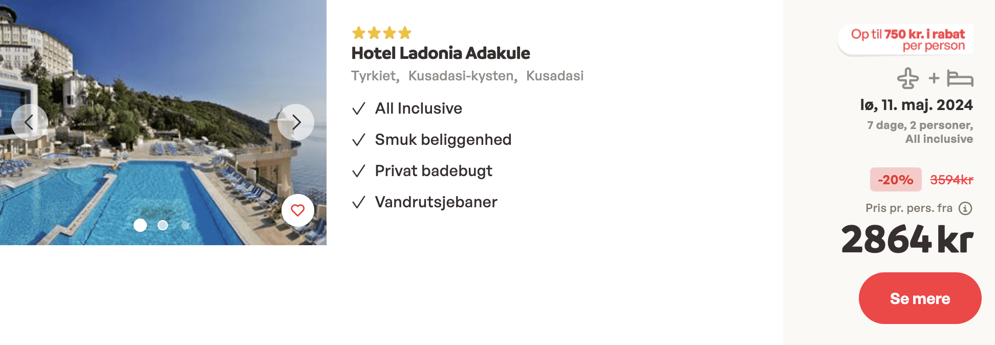 Her kan du komme afsted i en uge med all inclusive på det 4* Hotel Ladonia Adakule for kun 2.864 kroner pr. person.