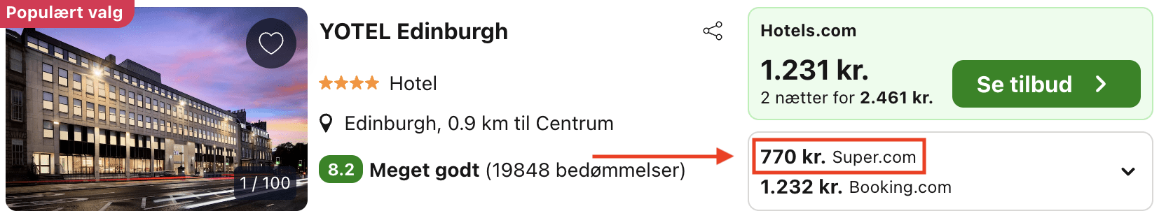 Og prisen er altså kun 1.104 kr. pr. person ved to personer inkl. fly & hotel.