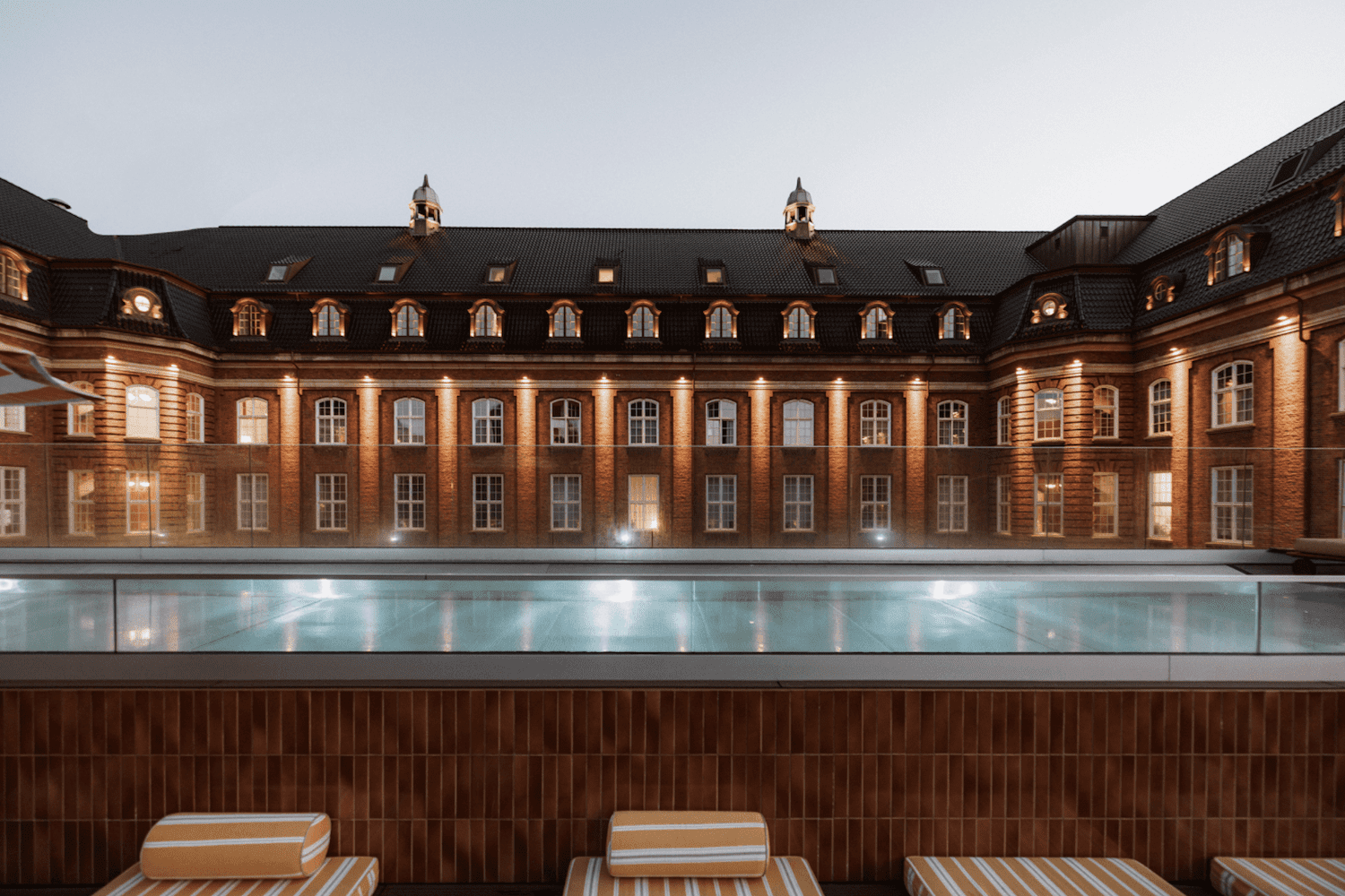 Villa Copenhagen byder på en eksklusiv tagterrasse med en opvarmet 25-meter lang pool, hvor du kan svømme omgivet af Københavns skyline.
