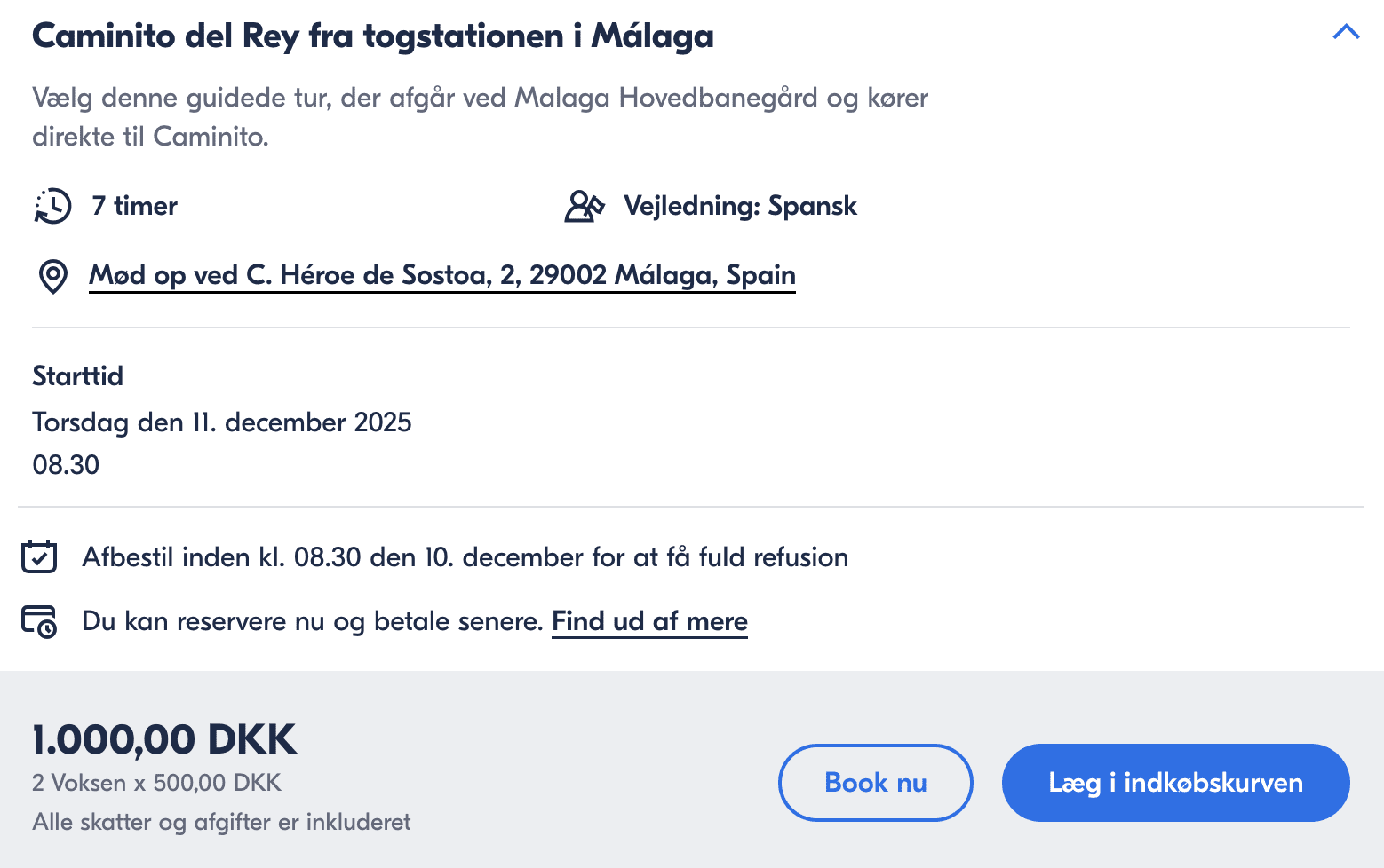 ✅ To nætter på 4* hotel inkl. fly & guidet tur til Caminito del Rey