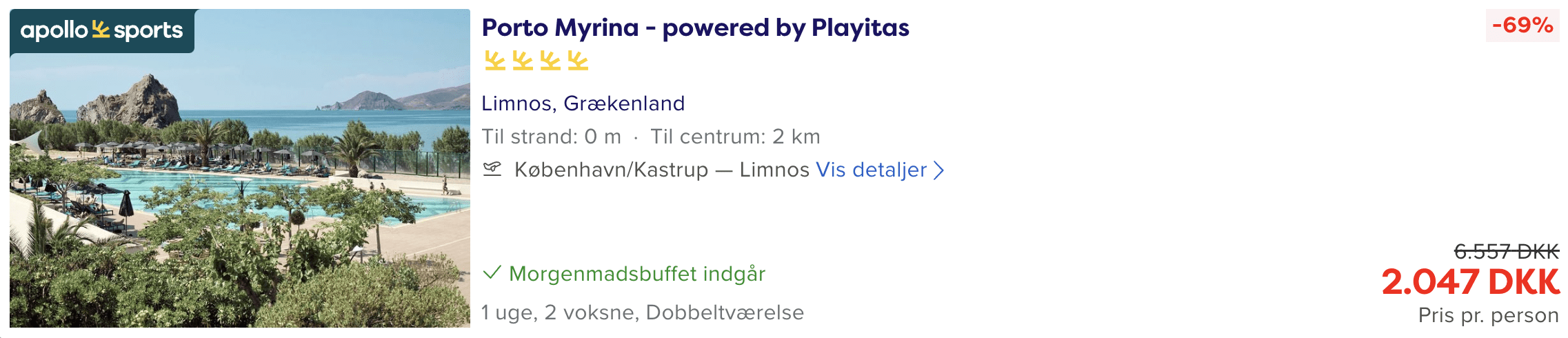 Vi har fundet tilbuddet på Apollo. Her har vi taget udgangspunkt i den billigste afgang den 26. maj.
