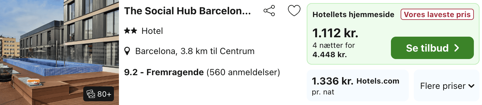 En rejse til Barcelona er selvfølgelig ikke komplet uden et lækkert hotel, og i dette rejsetilbud har vi taget udgangspunkt i det anmelderroste The Social Hub Poblenou, som scorer 4,5 ud af 5 stjerner på Trustpilot.
