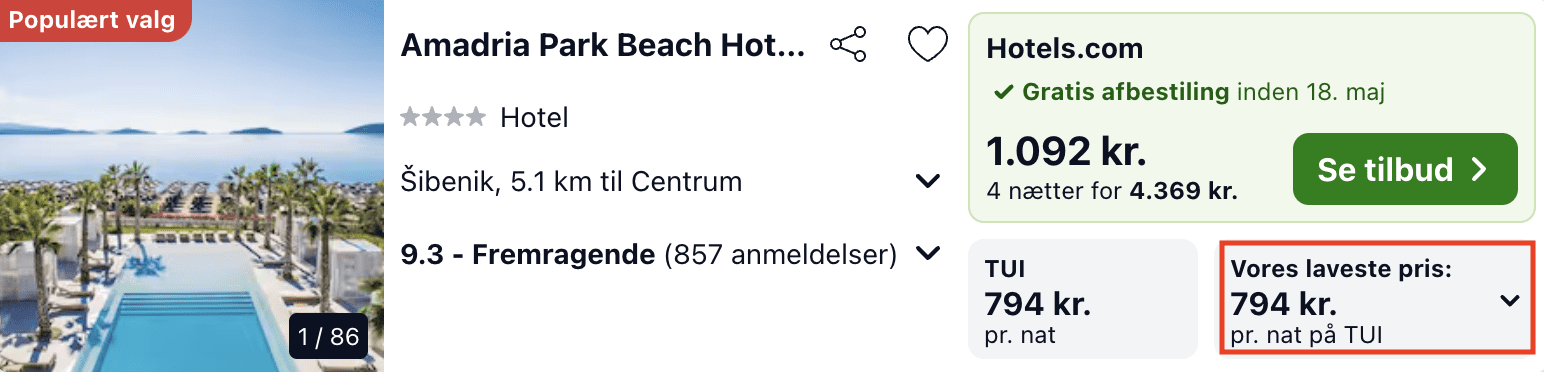 Her koster fire nætter i et dobbeltværelse 3.176 kroner.