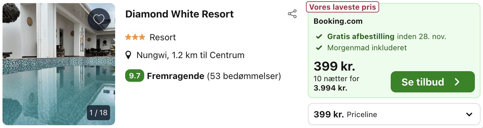 Dette tilbud er spottet den 23. september. Desværre kan priserne i rejsebranchen til tider ændre sig hurtigere, end du kan nå at pakke kufferten! 🧳