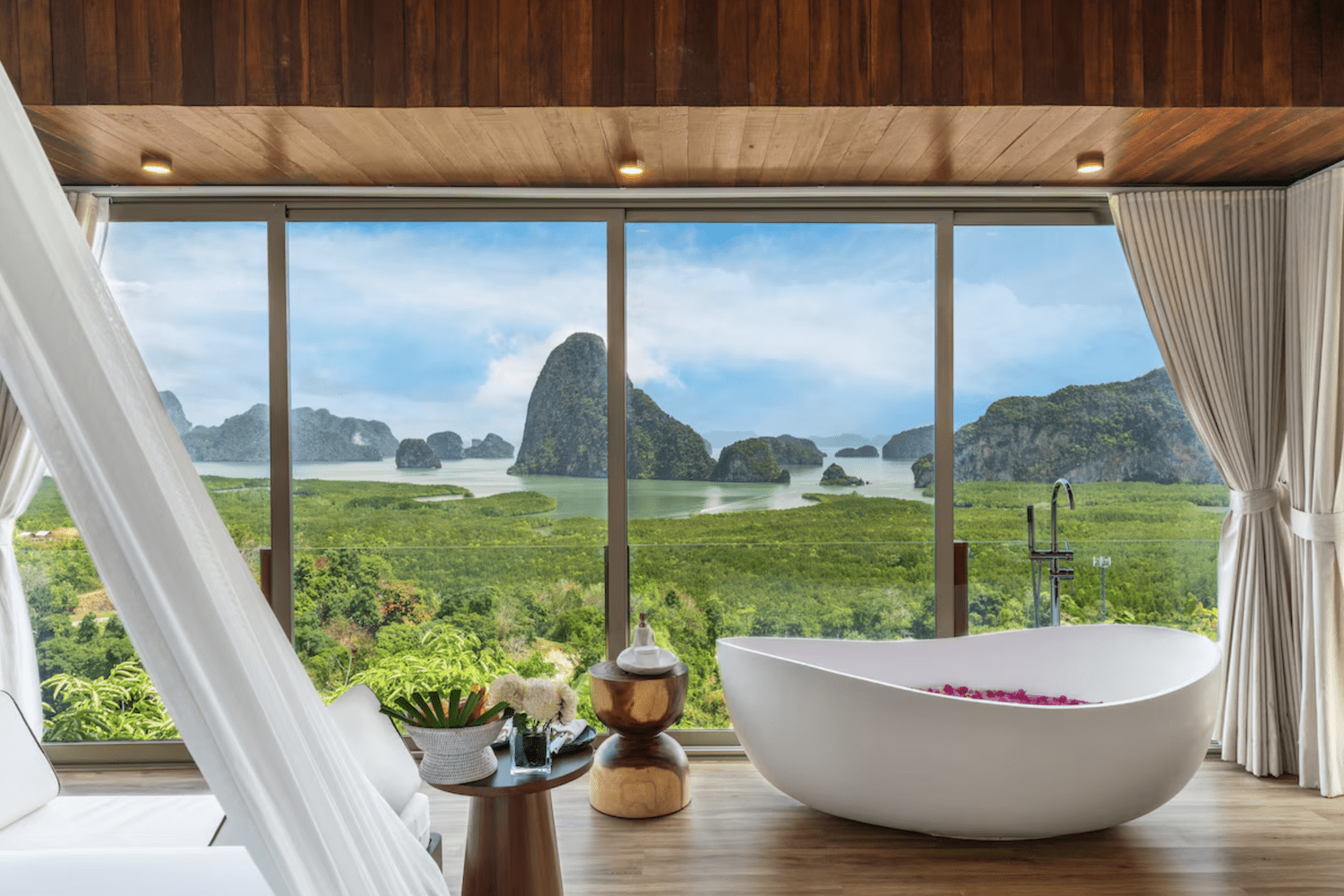 Her finder du blandt andet et kæmpe badekar, der har panoramaudsigt over Phang Nga-bugten og dens ikoniske kalkstensklipper, som du kan nyde fra første parket ved solopgang.
