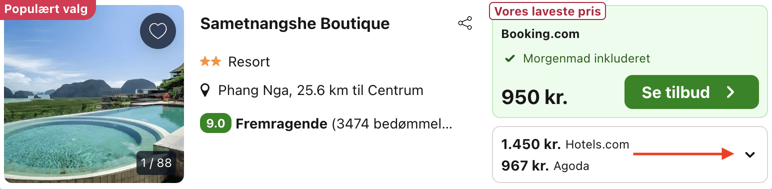 I skrivende stund er dog muligt at finde værelser på Sametnangshe Boutique for helt ned til 950 kr./nat – svarende til kun 475 kr. pr. person.
