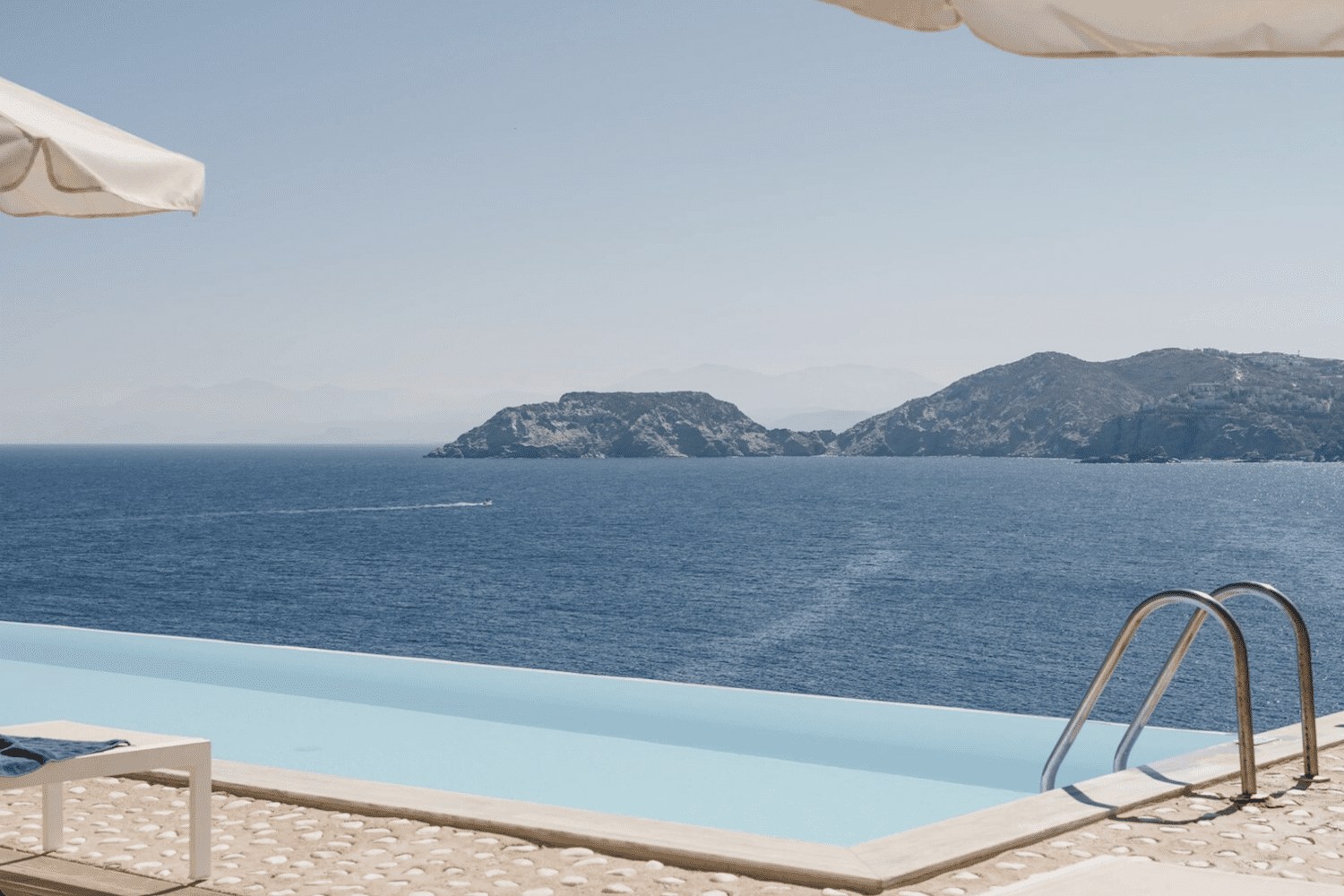 Seaside A Lifestyle Resort er et luksuriøst voksenhotel, der er beliggende på en klippeskrænt med en helt fantastisk udsigt over havet og bugten ved Agia Pelagia.