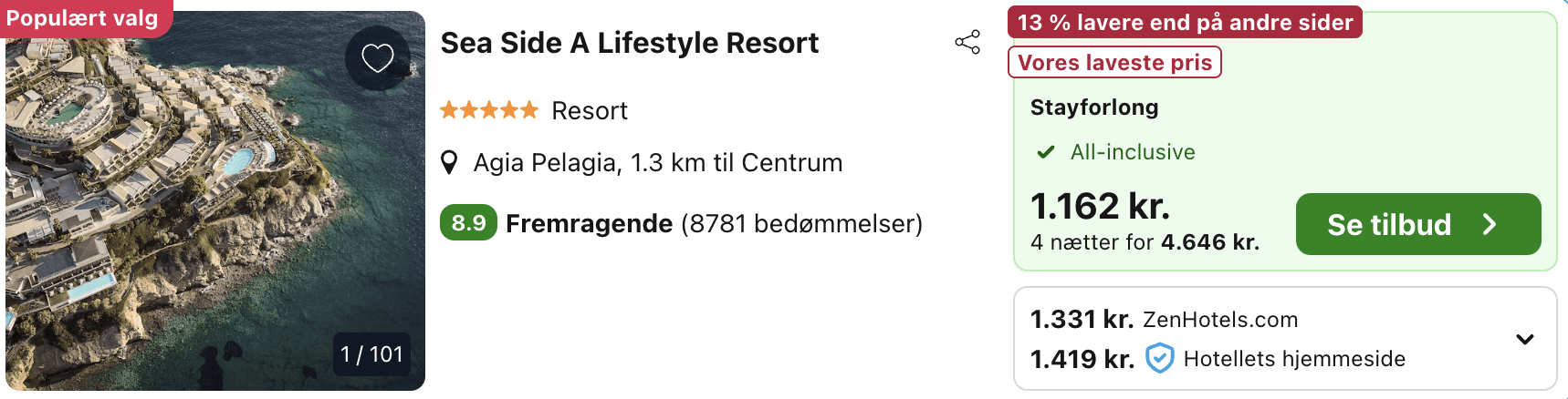 Dette tilbud er spottet den 2. december. Desværre kan priserne i rejsebranchen til tider ændre sig hurtigere, end du kan nå at pakke kufferten! 🧳