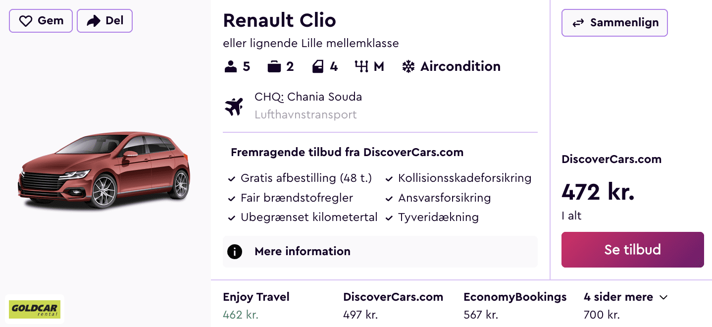 Fra den 16-20 april kan du nemlig finde lejebiler for helt ned til 472 kroner – og det er vel og mærke for hele perioden inkl. ubegrænset kilometertal.