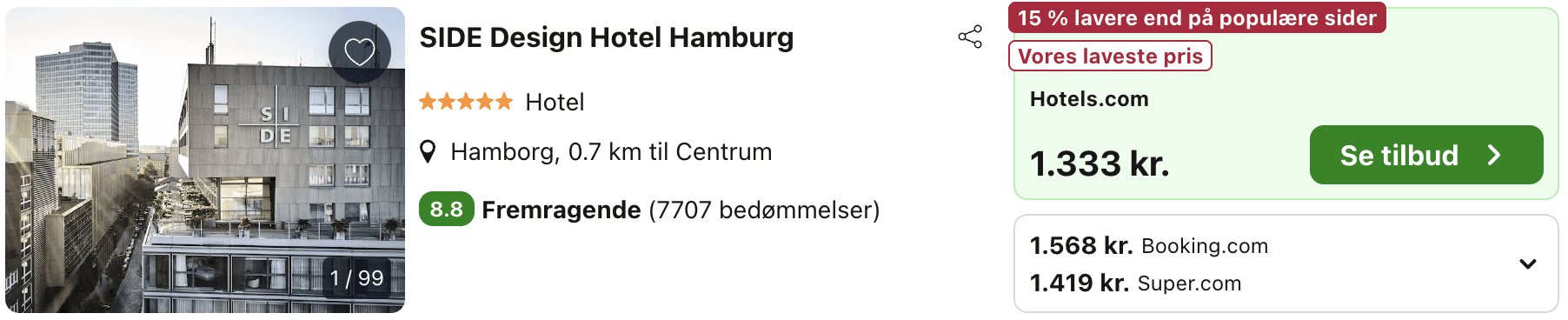 Denne gang går turen til Hamborg, hvor du kan se frem til et luksusophold på det 5* SIDE Design Hotel Hamburg fra kun 667 kr. pr. person.