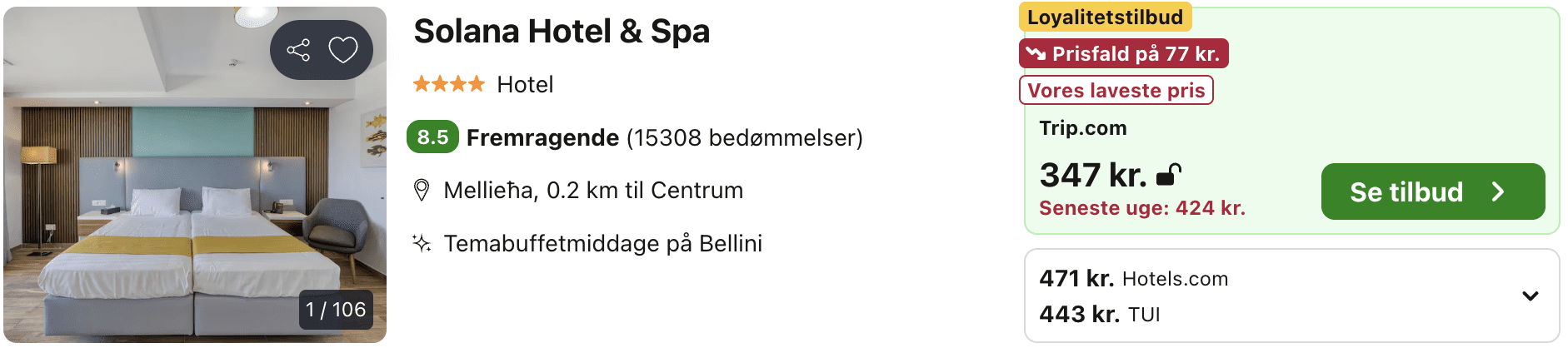 For kun 1.760 kr. pr. person ved to personer får du både fly og fem nætter på et superskønt 4* hotel.