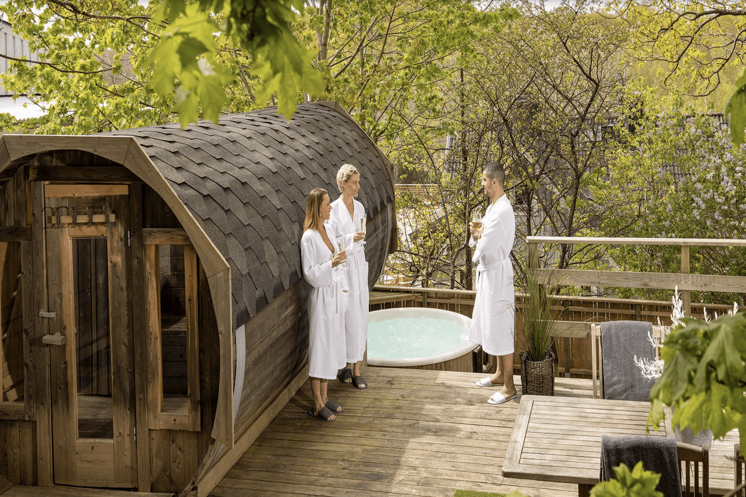 I de forskellige zoner finder du således alt fra varme pools og saunaer til dampbade og udendørs hot tubs under åben himmel.