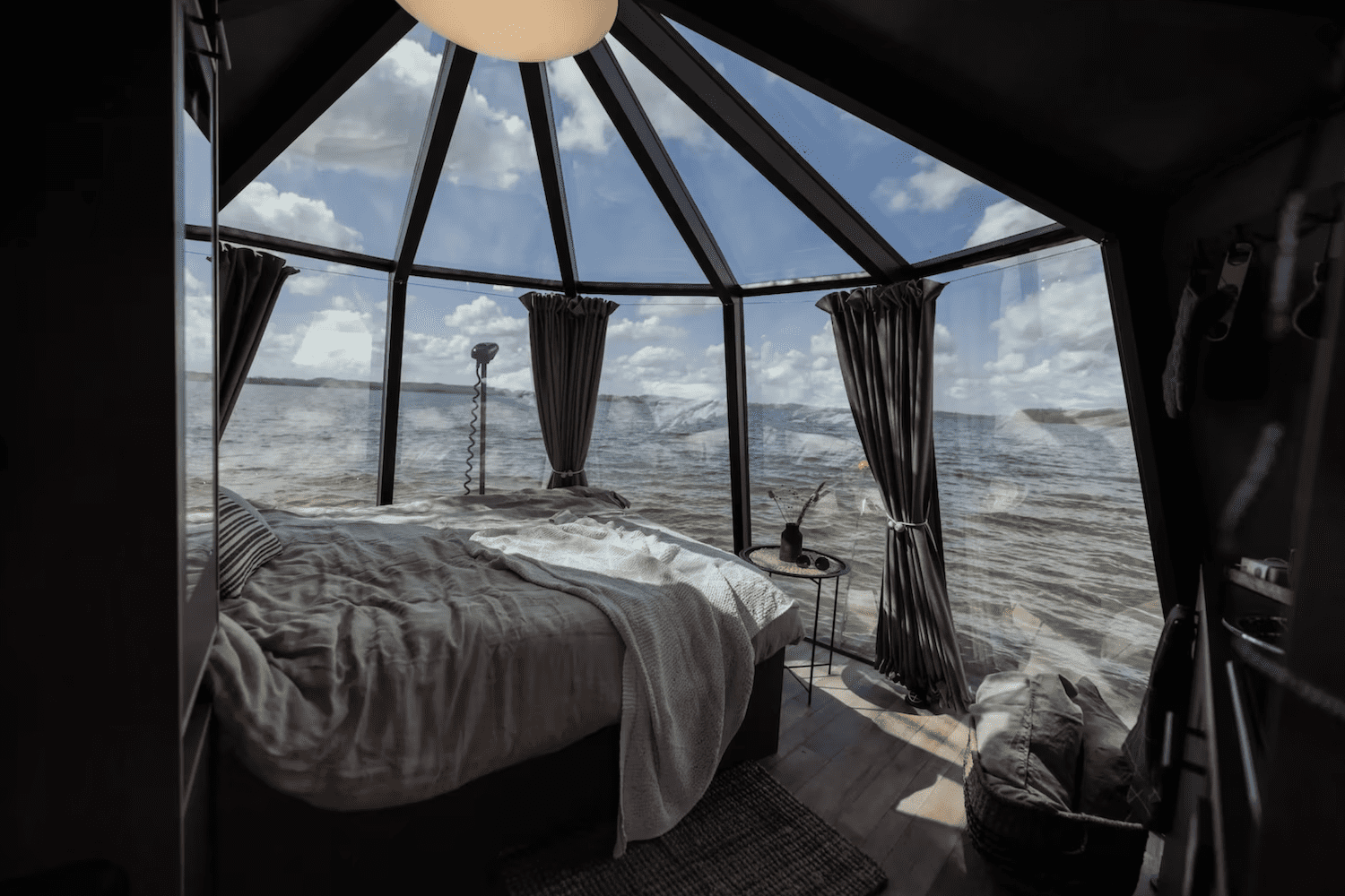 Her kan du nemlig se frem til at overnatte i en unik glas-iglo, der ligger direkte på Ringsjön.